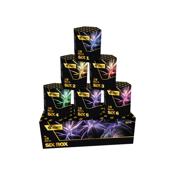 <p>Deze box bevat 6 verschillende losse cakes met 19 shoten. De lanceerbuizen zijn 25mm groot.</p>